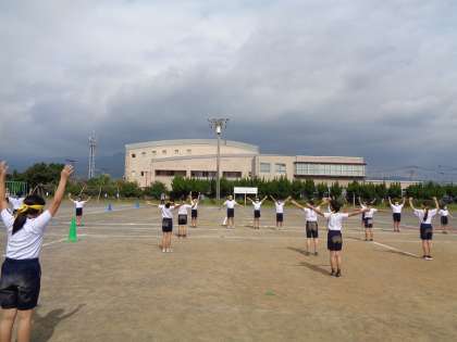 4時間目に4年生が学年運動会を行いました。団体競技は「台風の目」です。三人の息を合わせて棒を回すところがみどころです。