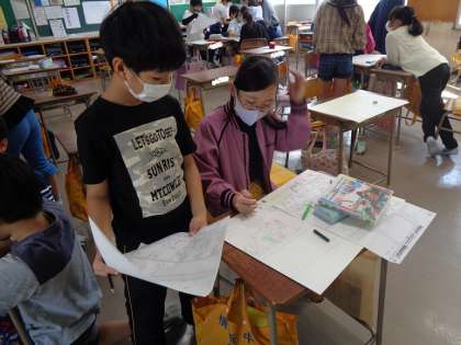 地図ができたら、危険箇所やどう行動するとよいのかなどを話し合います。
