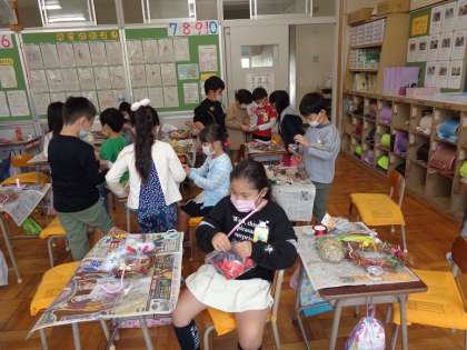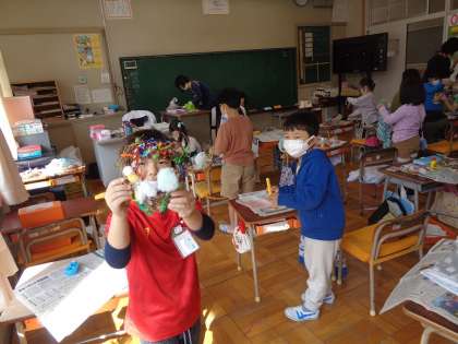 できあがったリースをうれしそうに見せてくれました。クリスマスに飾るのかな?
