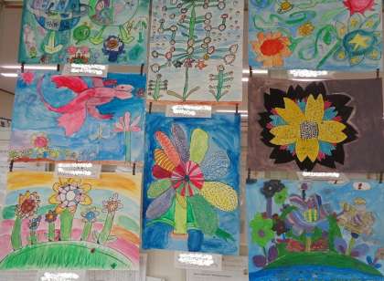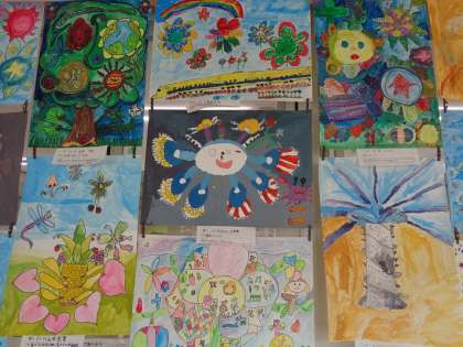 4年生の廊下に色とりどりの「まぼりしの花」が咲きました。