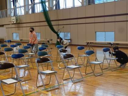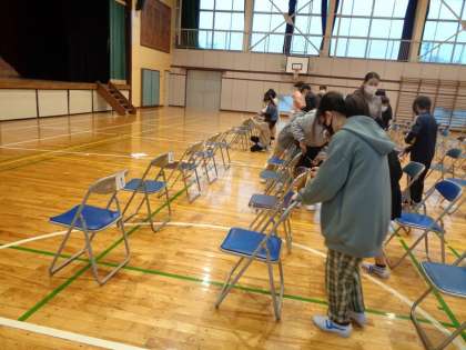 サンタイムに6年生が就学時健康診断の準備をしました。体育館に椅子を並べたり、書類を配ったり、てきぱきと働く姿がたのもしかったです。