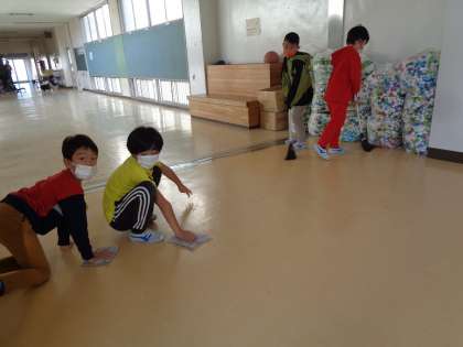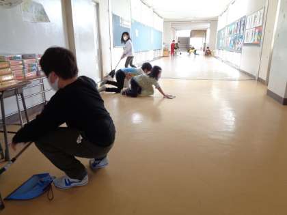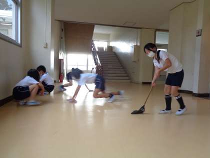 昼休み後の掃除の様子です。原小・原東小・原中の原三校では、学びへの意欲、清掃、人間関係、あいさつを共通実践項目としています。清掃は、黙働をめあてに取り組んでいます。どの学年もすぐに取りかかり、だまって掃除をしていました。低学年の子供たちもほうきやぞうきんの使い方が上手になりました。