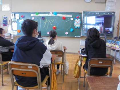 6年生は各学年からのメッセージ動画を見ながら、「かわいい」「がんばってる」「すごい!」などとつぶやいたり、音楽に合わせて身体を動かしたりしていました。とてもやさしい目が印象的です。