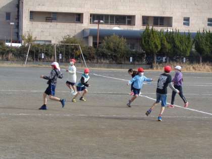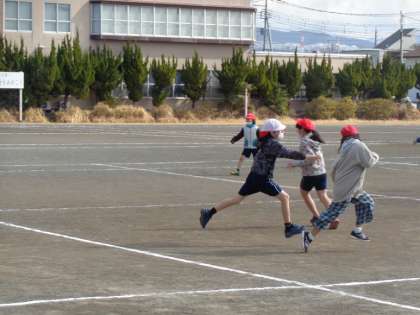 なかよしの朝のウォーミングアップは鬼ごっこ。身体をしっかり動かして、今日の学習に向かいます。