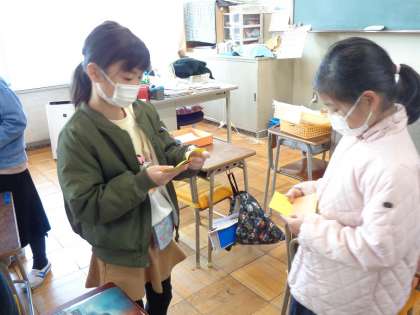 「じぶんたんけん」の学習が進んでいます。小さい頃の自分について調べて分かったことをカードにかいて友達と伝え合いました。