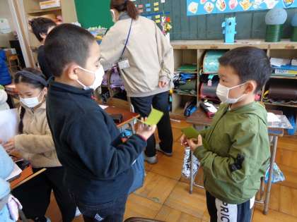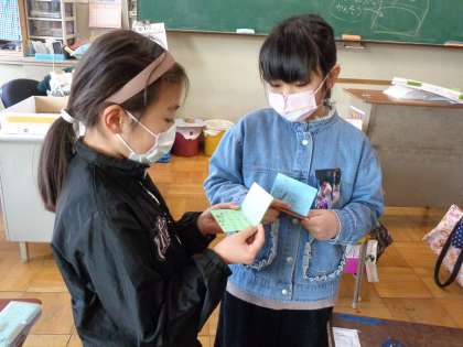 「じぶんたんけん」の学習が進んでいます。小さい頃の自分について調べて分かったことをカードにかいて友達と伝え合いました。