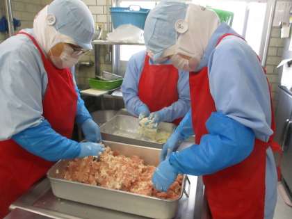 2枚目の写真はミートローフを作っている様子です。
