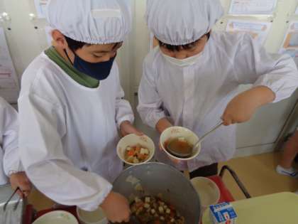 中学年・高学年は、配膳もとてもスムーズ。