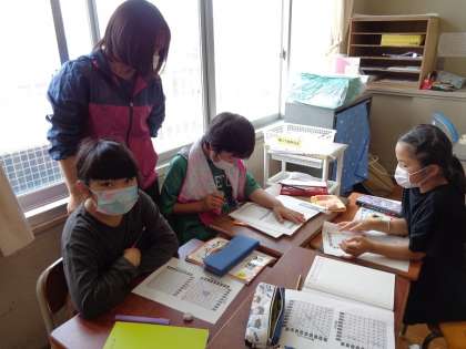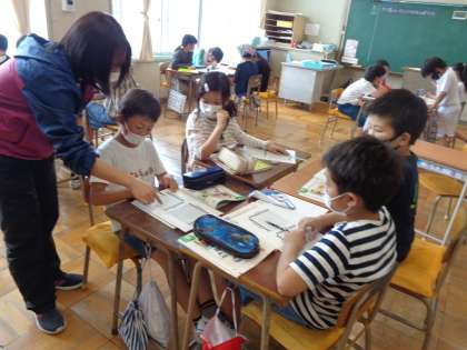 2年生で学習した九九の表をじっくり見て、秘密をみつけました。図を見ながら、気付いたことをどういう言葉で表現したら友達によく伝わるのか、頭を使っていました。