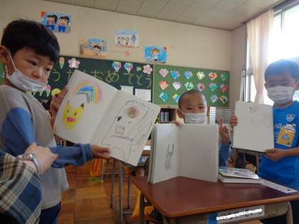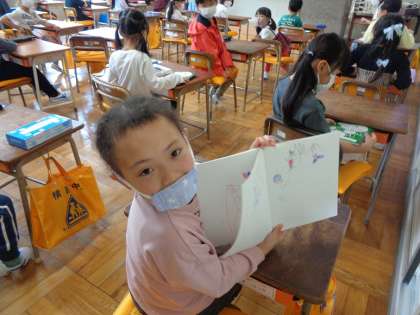 「こんな絵を描いたよ」シャボン玉ノートを見せてくれました。