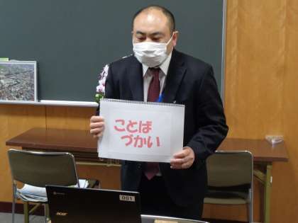 運営委員長さんの自己紹介と抱負の発表のあと、校長先生とさわやかなあいさつをして、朝会が始まりました。今日は、生活指導担当から、「あいさつ」「ことばづかい」「そうじ」について、どんなふうにすればお互いに気持ちがいいかな? と考えて実行してみようという話がありました。