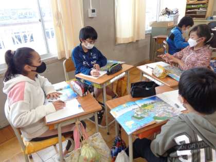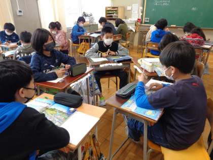 「わたしたちの生活と環境」私たちの生活を便利にするものがどのように環境に影響しているのかを話し合っています。