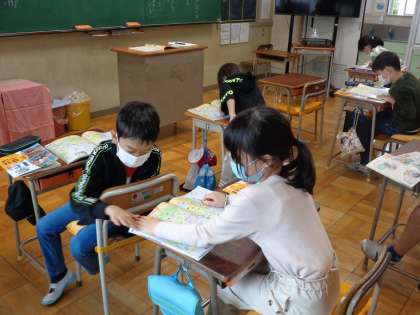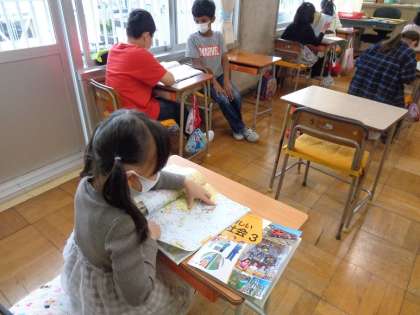 社会科の学習が始まりました。地図帳を開いてみてみました。「私たちがすんでいるところはどこだろう?」 「日本はここだよ!」 帰りの会で、「世界は広いなあと思いました。」という感想が聞かれました。