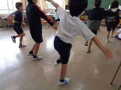 からだほぐしをしました。片足でどれくらい立ってられるかな?