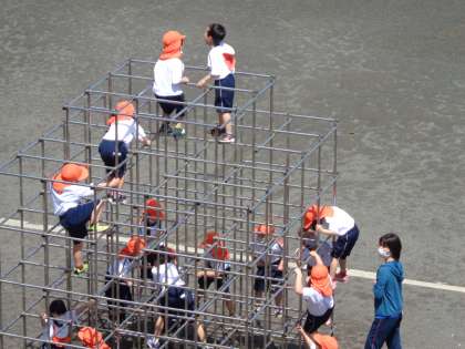 1年生がジャングルジムに挑戦しました。