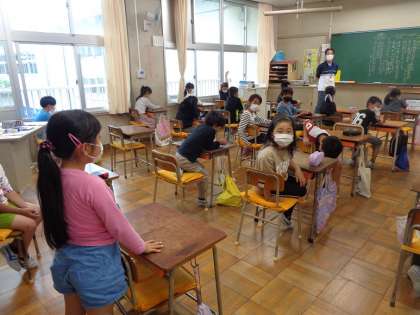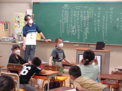 「Chromebookの使い方」について話し合っています。先生から「禁止」されるのではなく、自分たちでよりよい使い方を考えていくことに意味があります。何でもできる道具を手に入れたからといって、何をしてもいいわけではないということを実感し、道具として適切に使う力を身に付けてほしいと思います。