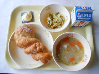 揚げパン 牛乳 ポトフ 茎わかめのサラダ