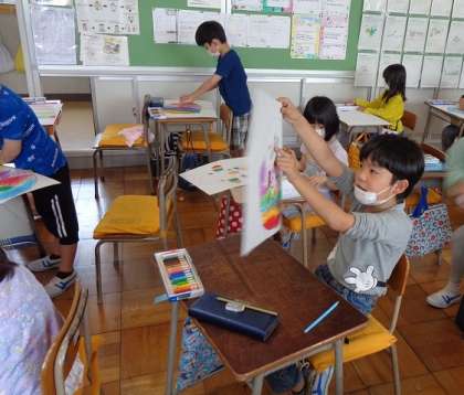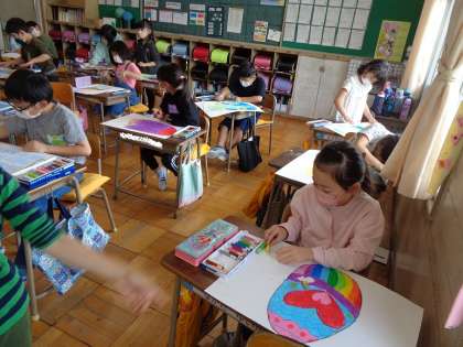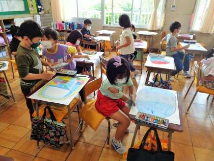 「ふしぎなたまご」たまごから何が出てくるかな? 想像をふくらめながら今日はたまごを描きました。「先生、見て見て!」どの子もたまごにこめた思いがあります。