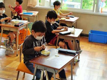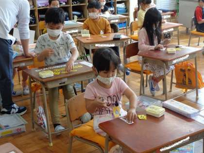 さんすうボックスの数カードを取り出してみました。1から10まで並べ始めた子もいます。