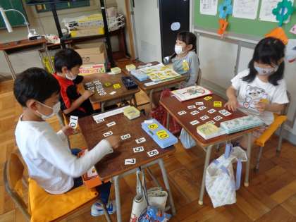 0から10までのカードを並べています。友達と競い合っていくうちにだんだんはやく並べられるようになります。