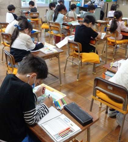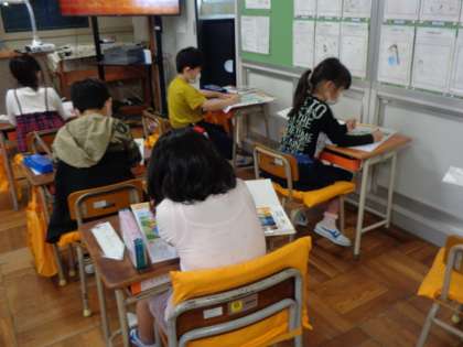 算数のテストをしました。机を動かして「テスト隊形」になって取り組みます。