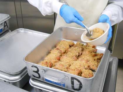 2枚目は鶏肉の香草パン粉焼きを仕上げている様子です