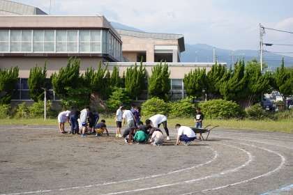 4月の活動の反省や5月の活動計画についての話し合いの後、体育委員さんはリレーの練習でけがをしないようにグラウンド整備、広報委員さんは掲示物のはり替えをしました。