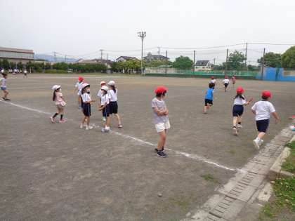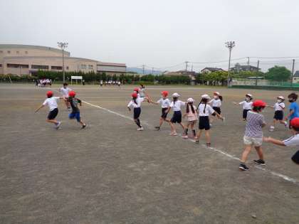 3年生はリードをして走りながらバトンを渡せるようになるために練習をがんばります。