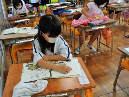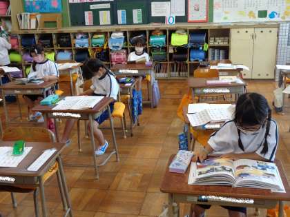 心臓検診が終わって戻ってきた子供たちが、静かに読書していました。先生がいなくても、読みたい本を開いて一生懸命に読んでいる姿が素晴らしいです。