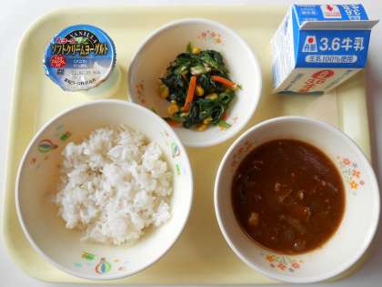 ほうれん草とコーンのソテー ヨーグルト