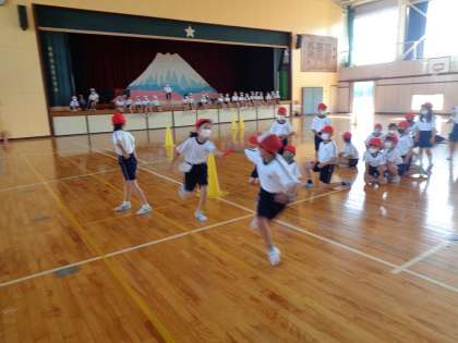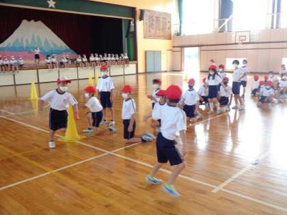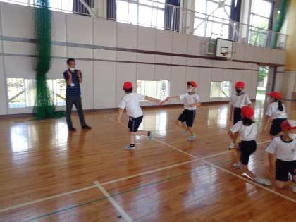 2組の担任の先生が出張なので、1・2組合同でリレーの練習をしました。