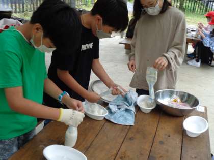 今日の飯ごう炊さんは、非常時の炊き出し訓練も兼ねて。