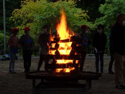 キャンプファイヤーの始まりだ 公開日 2022/06/15 更新日 2022/06/15 5年 火の神様からもらった、 1組 絆の火 2組 協力の火 3組 団結の火 火が明るく、熱く、みんなを照らします。 いいね(0)
