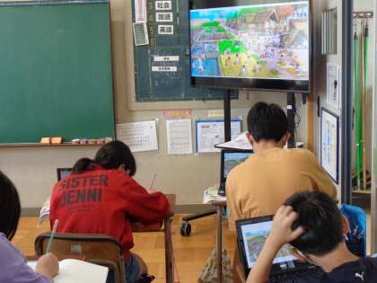 歴史の学習に入りました。縄文時代と弥生時代の生活の様子を見比べて、気付いたことを話し合っています。