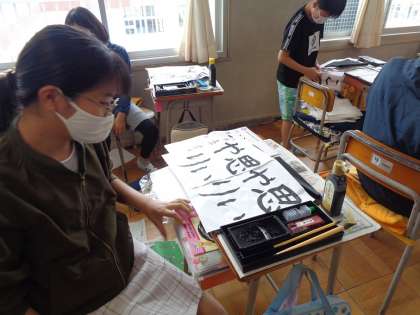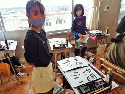 「思いやり」2回目の授業。集中して練習したあと、今日の一番と初めて書いたものと比較してみました。「うまくなってる!」自分の上達を実感した瞬間でした。