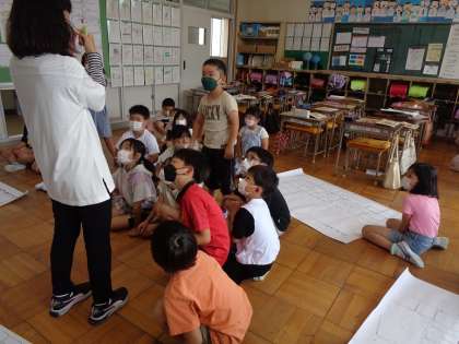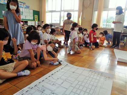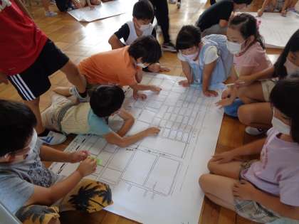 校区の地図を前に、自分の家はどこだろう・・・? 人生初の地図かもしれません。