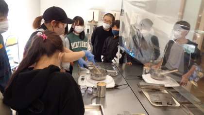 東京土産の代表格、雷おこしは200年以上の歴史があること、浅草の町とともに人々に知られるようになっていったことを映像で教えていただきました。その後、いよいよ雷おこし作りの体験です。職人さんがやると簡単そうですが、実際にやってみるとなかなか難しいものです。