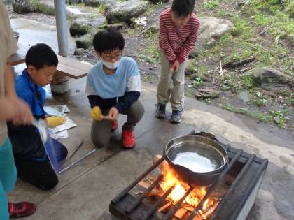 みんなで協力して火をおこしました。