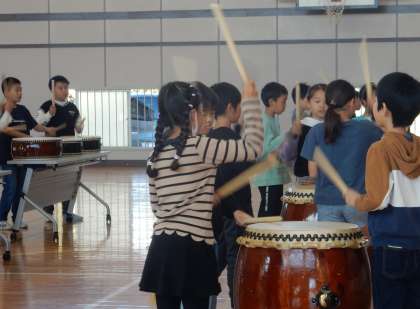 4年生が、白隠太鼓体験をしました。1学期に初めて太鼓を叩いたときに比べ、力強い雄になりました。リズム打ちも、テンポ良くできました。