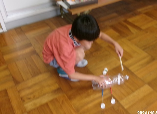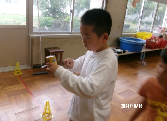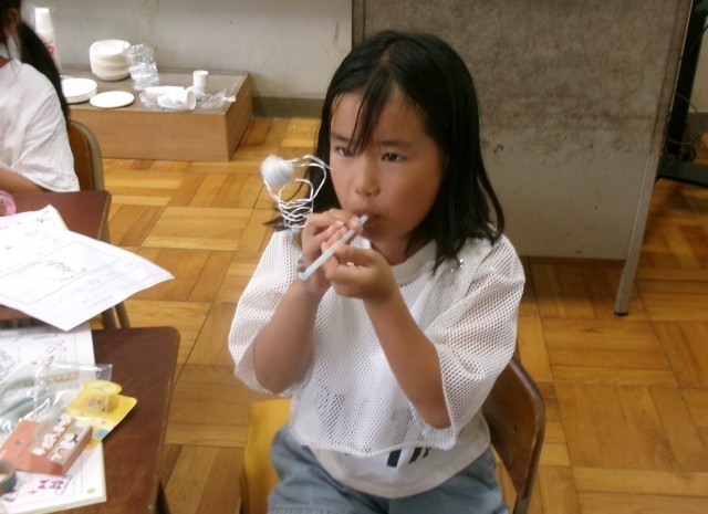 2年1組の生活科「作ってあそぼう うごく おもちゃ」の様子です。完成した子は遊んでみて改良をしています。