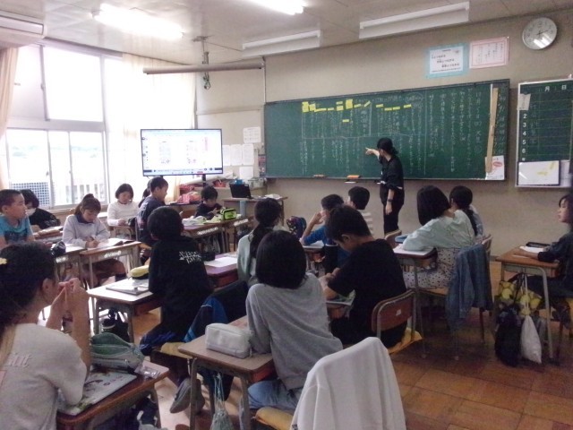 5年1組の道徳の授業の様子です。教育実習生の授業が始まっています。