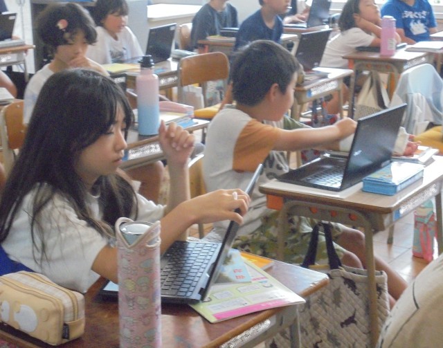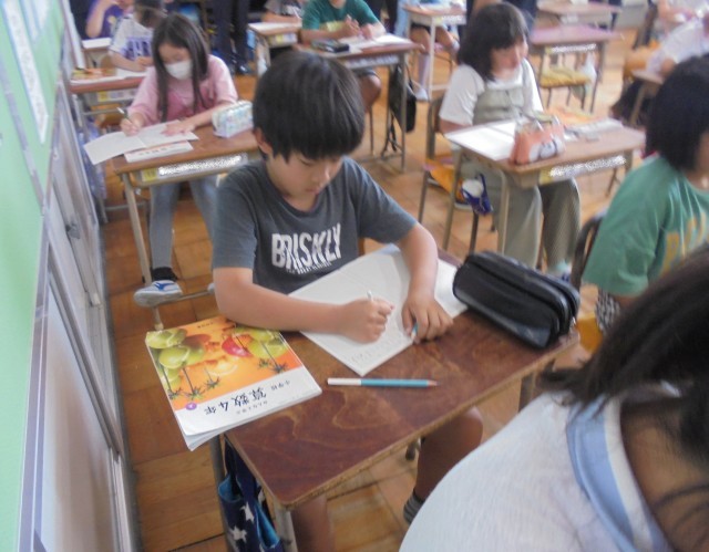 沼津市の西ブロックの校長会の皆さんが授業を参観しに来校しました。3年生、4年生の様子です。