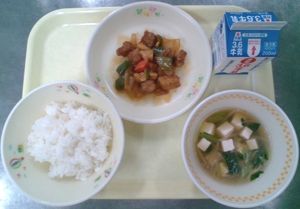 ごはん 牛乳 酢豚 春雨スープ
