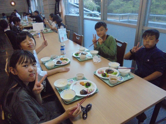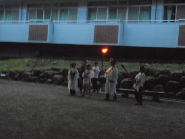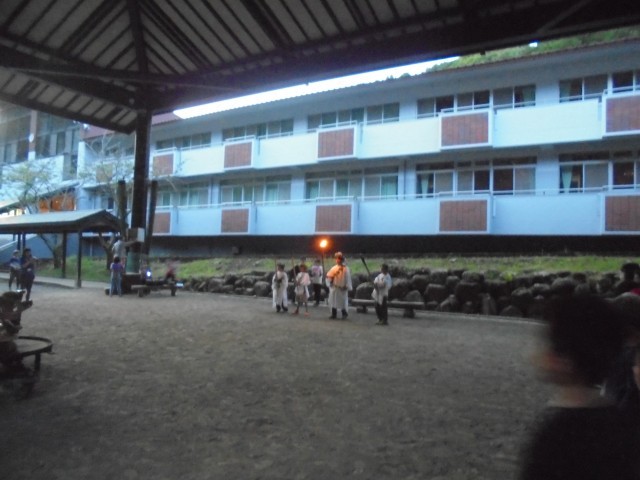 自然教室1日目、夕食〜キャンプファイヤーの様子です。