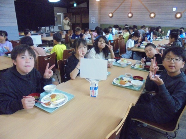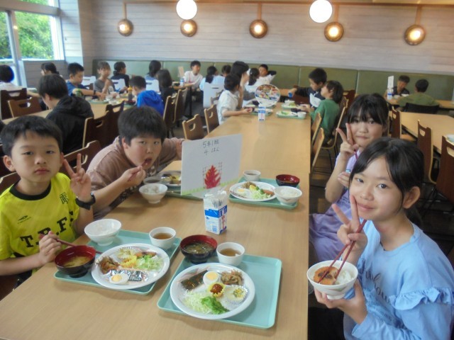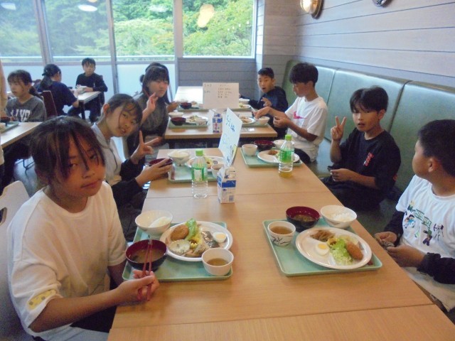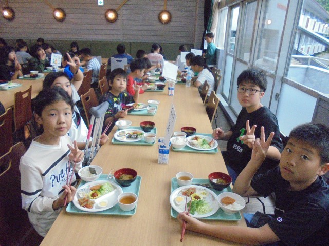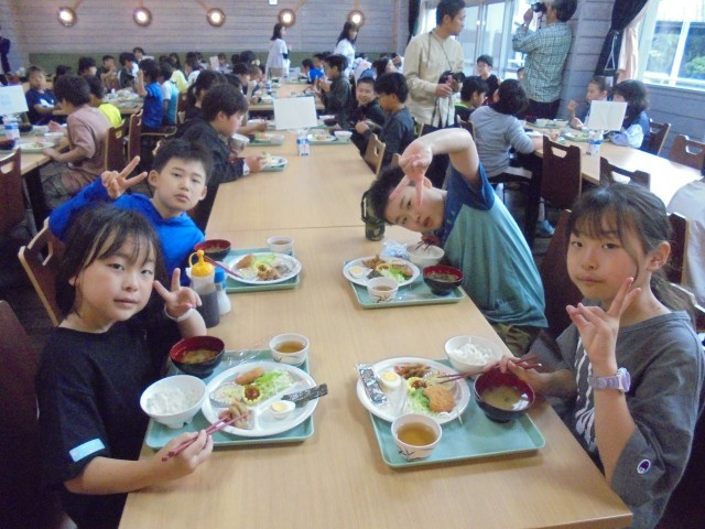 自然教室2日目、朝食の様子です。