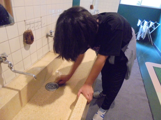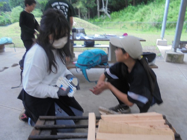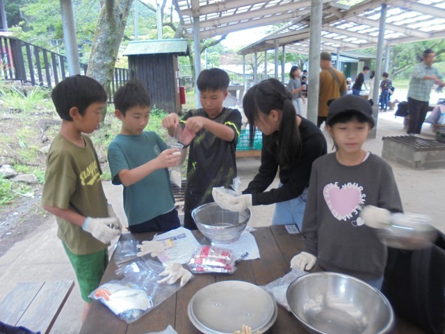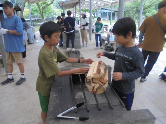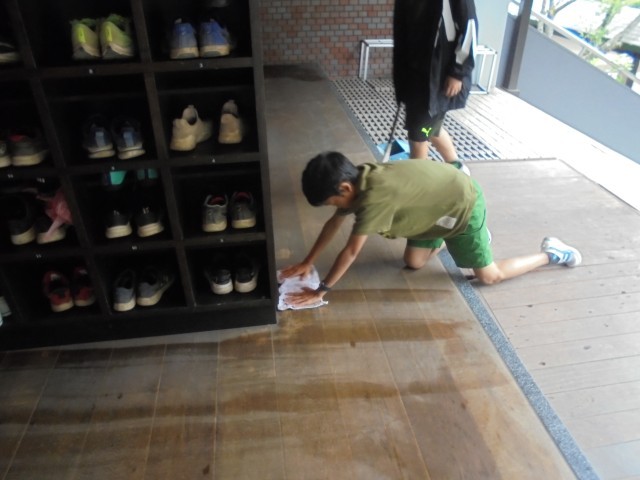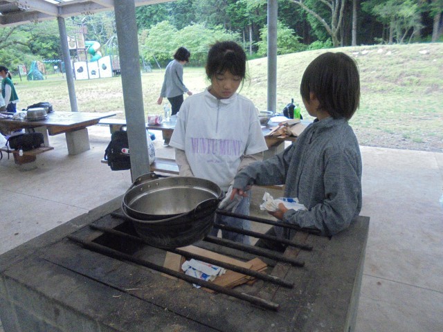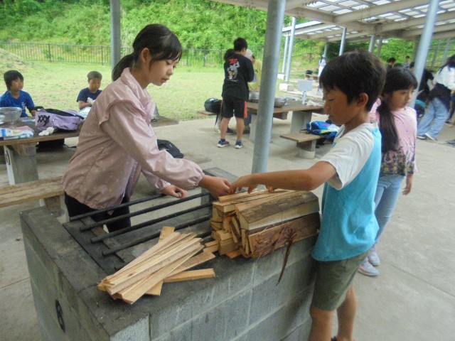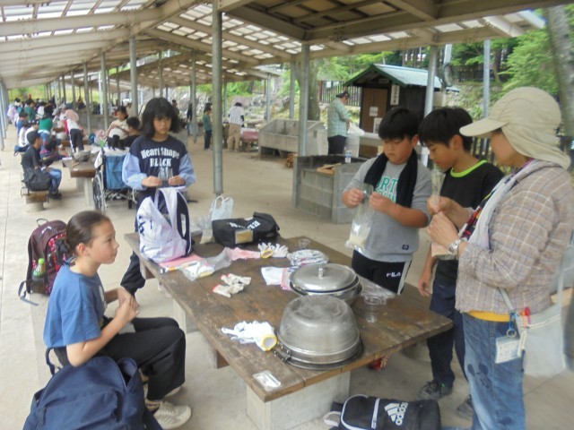 自然教室2日目、清掃活動、飯ごう炊さんの様子です。