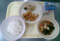 チキンピラフ 牛乳 オムレツのデミグラスソースがけ ポテトスープ