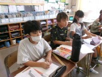 4年1組理科の授業の様子です。夏の終わりの生き物の様子を調べています。