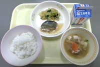 ごはん 牛乳 さばの味噌煮 おひたし 薄くず汁教室からの一言「さばとごはんがすご...