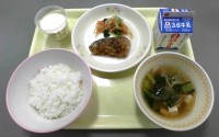 ごはん 牛乳 たこの唐揚げ ほうれん草のナムル さといものみそ汁 静岡県産みかん...